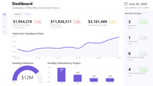 The Power BI implementation provided our client and their client with a centralized, real-time view of contract performance and resource utilization. The intuitive dashboard now provides several benefits to the team, including allowing them to: